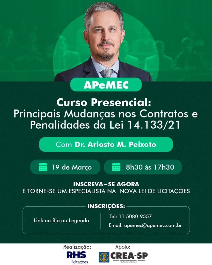 – Professor da RHS Licitações e autor do livro “Pregão Presencial e Eletrônico”.